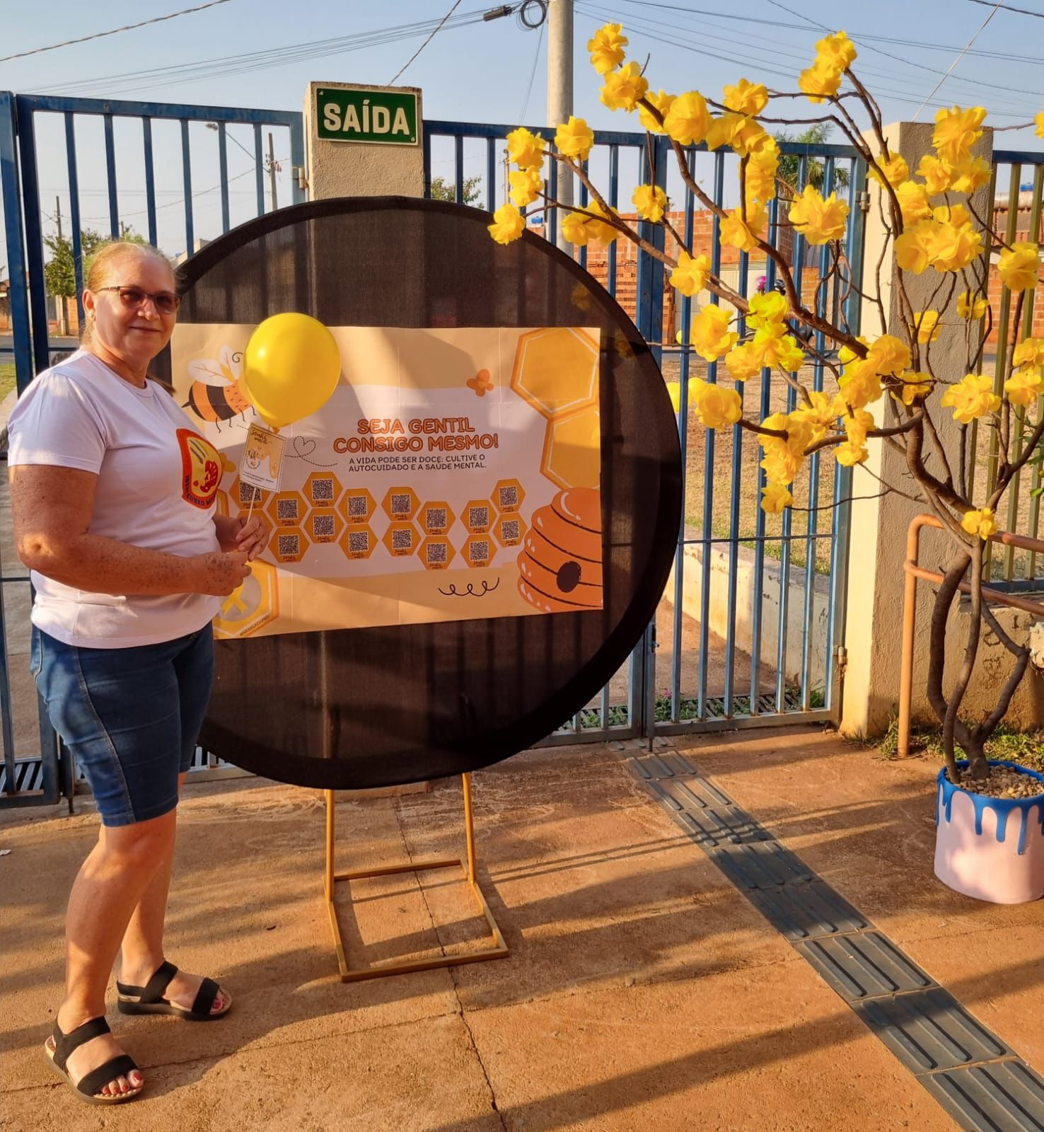 O Centro de Educação Infantil Irene Sueko promoveu uma linda recepção para as famílias, com um foco especial na conscientização sobre a prevenção ao suicídio, em alusão ao Setembro Amarelo. Durante o evento, foi exposto um cartaz informativo que abordava a importância deste tema delicado. O cartaz incluía QR codes que levavam a mensagens individuais de apoio e reflexão, que os pais puderam descobrir ao escanear com seus celulares.